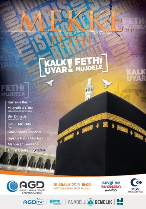 Anadolu Gençlik Derneği tarafından 31 Aralık 2015 Perşembe gecesi Sakarya Atatürk Kapalı Spor Salonunda “ Mekke’nin Fethi “ isimli program düzenlenecek.