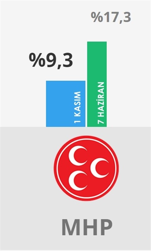 7 Haziran da Akyazı'dan 9.217 oy alan MHP 1 Kasım'da 5.102 oy alarak % 45'lik bir oy kaybına uğradı.