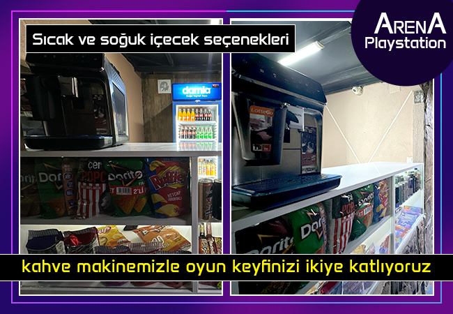 Sıcak/soğuk içecekler, kahve makinemiz ve atıştırmalık seçenekleri ile oyun saatlerini keyifli bir dinlenmeye dönüştür!