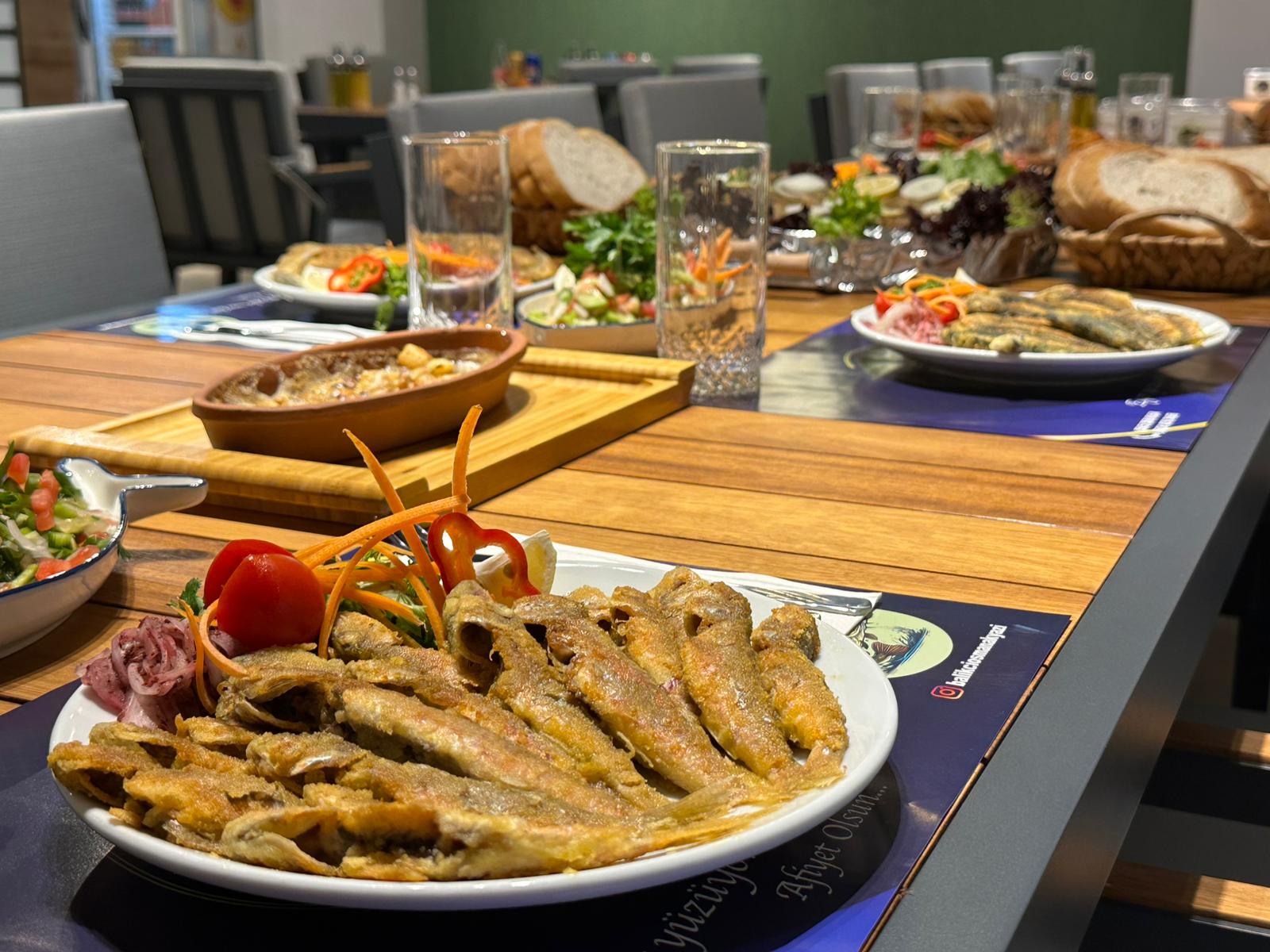 - Hamsi, İstavrit, Sardalya, Mezgit, Barbun, Somon, Kalamar, Karides ve daha birçok taze deniz ürünü usta şefler tarafından özenle hazırlanıyor.