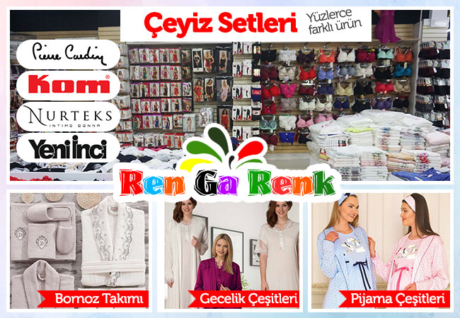 İç giyimin yanı sıra çeyiz setleri, pijama çeşitleri, bornoz takımı, havlu takımı, bikini modelleri, kız çocuk aksesuarları, bebek giyimi ve bebek setlerini de Ren Ga Renk’te bulabilirsiniz.