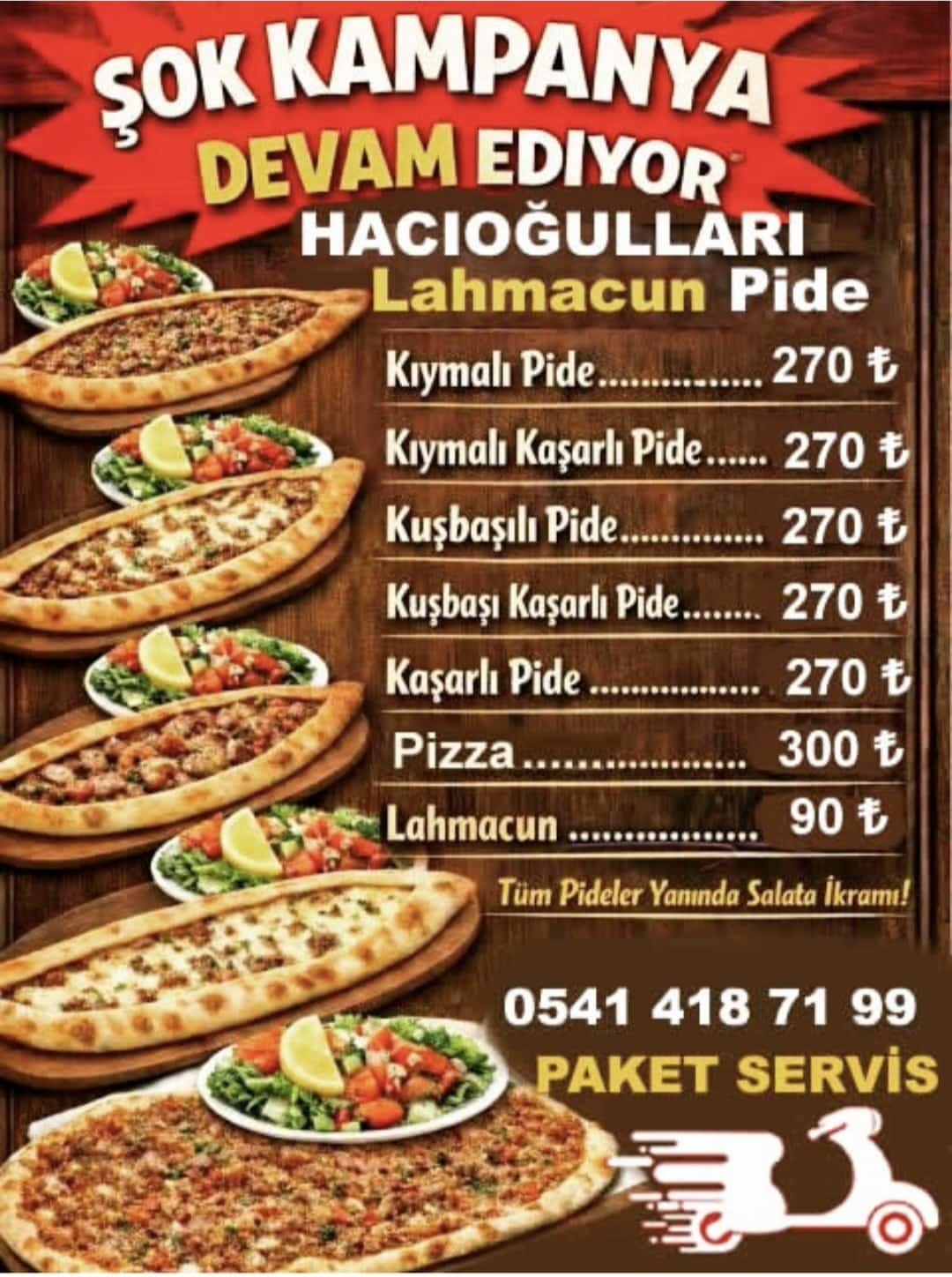 Her damak zevkine hitap eden menümüzde; kıymalı, kaşarlı, kuşbaşılı ve karışık pide çeşitleri yanında salata ikramıyla 270 TL.